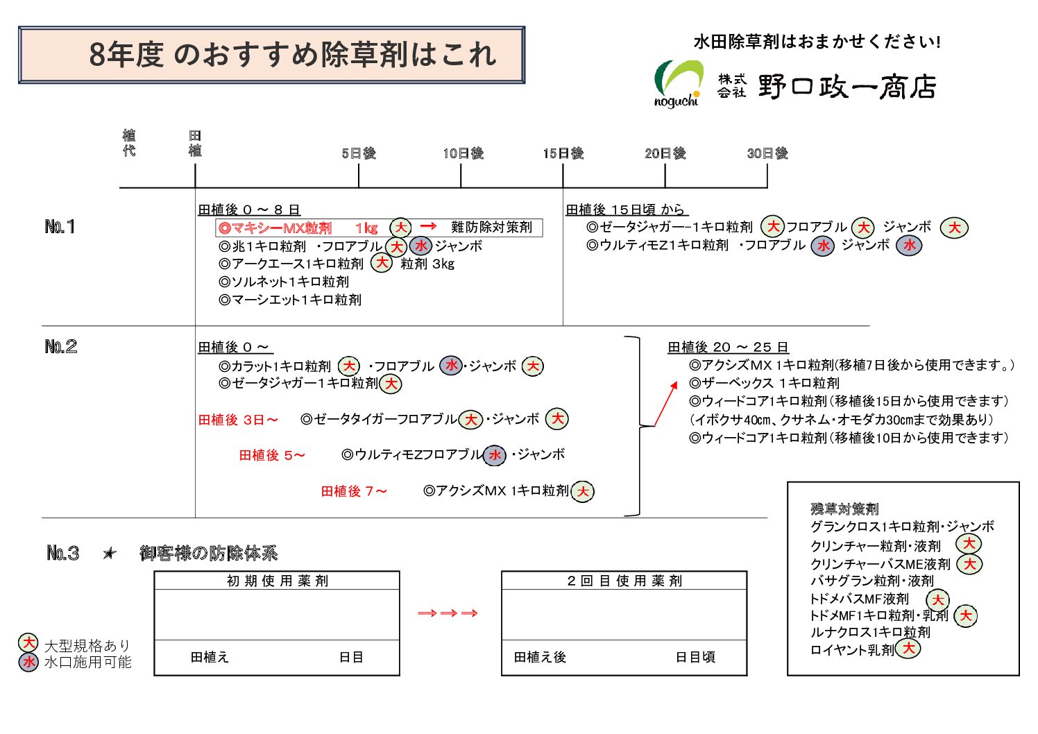 令和8年水稲除草剤体系表